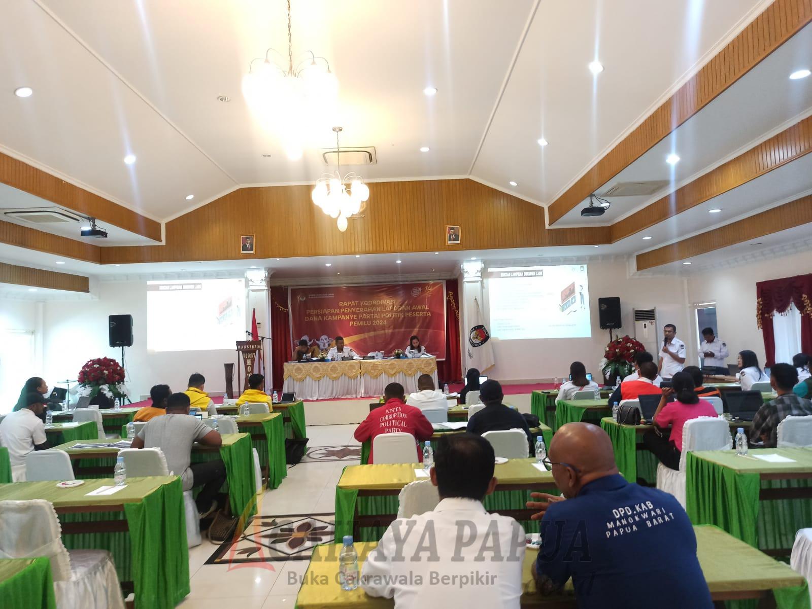 MANOKWARI, cahayapapua.id– Komisi Pemilihan Umum (KPU) Kabupaten Manokwari menggelar rapat koordinasi persiapan penyerahan Laporan Awal Dana Kampanye (LADK) partai politik peserta Pemilu 2024. KPU mengingatkan, parpol yang tidak menyelesaikan LADK bakal dicoret sebagai peserta Pemilu.