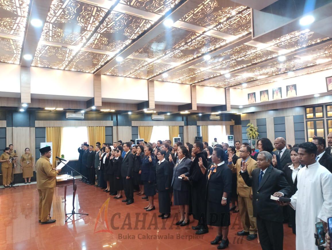 MANOKWARI, cahayapapua.id- Bupati Manokwari, Hermus Indou melantik 65 kepala sekolah dan pengawas se-Kabupaten Manokwari, Senin (26/2/2024). Kepada para pejabat baru, Hermus mengingatkan, kepsek dan pengawas adalah figur yang memberi warna bagi dunia pendidikan.