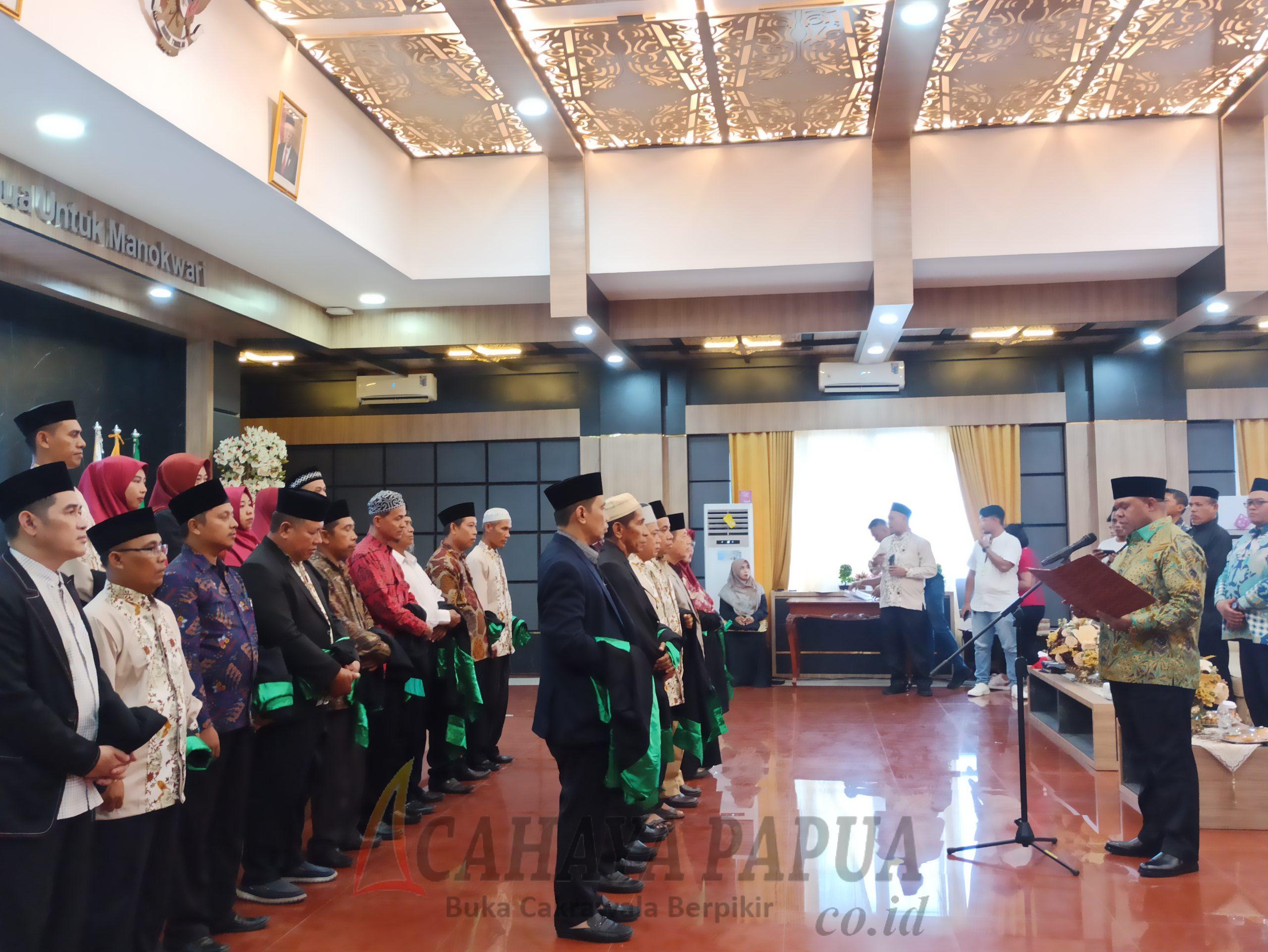 MANOKWARI, cahayapapua.id- Bupati Manokwari, Hermus Indou, melantik dewan hakim Musabaqah Tilawatil Quran (MTQ) X tingkat Kabupaten Manokwari di Sasana Karya, Kantor Bupati Manokwari, Minggu (2/5/2024).