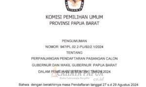MANOKWARI, cahayapapua.id- Pemilihan Kepala Daerah (Pilkada) Serentak Tahun 2024, telah masuk pada Tahapan Pendaftaran Calon Kepala Daerah