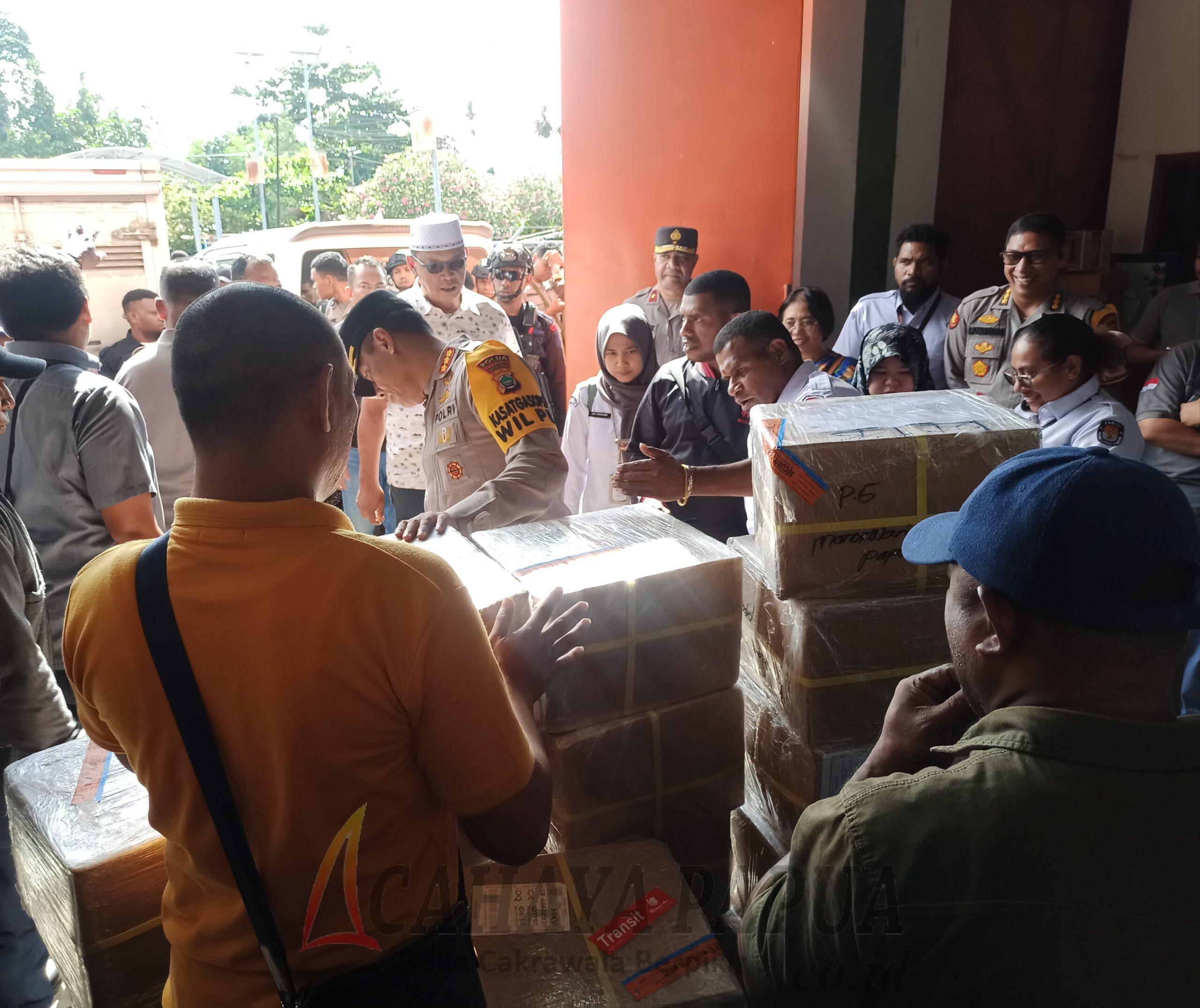MANOKWARI, cahayapapua.id- Polda Papua Barat turut serta mengamankan pendistribusian logistik surat suara pemilihan Gubernur dan wakil gubernur di Bandara Rendani Manokwari, Kamis (24/10/2024)