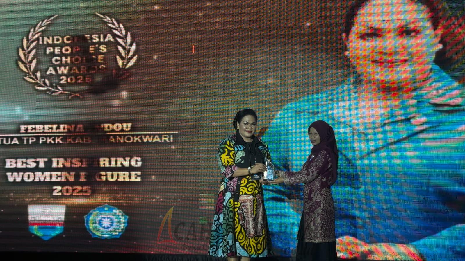 Pada momen yang sama, Ketua TP-PKK Kabupaten Manokwari, Ny. Febelina Indou dianugerahi penghargaan sebagai “Best Inspiring Women Figur 2025”