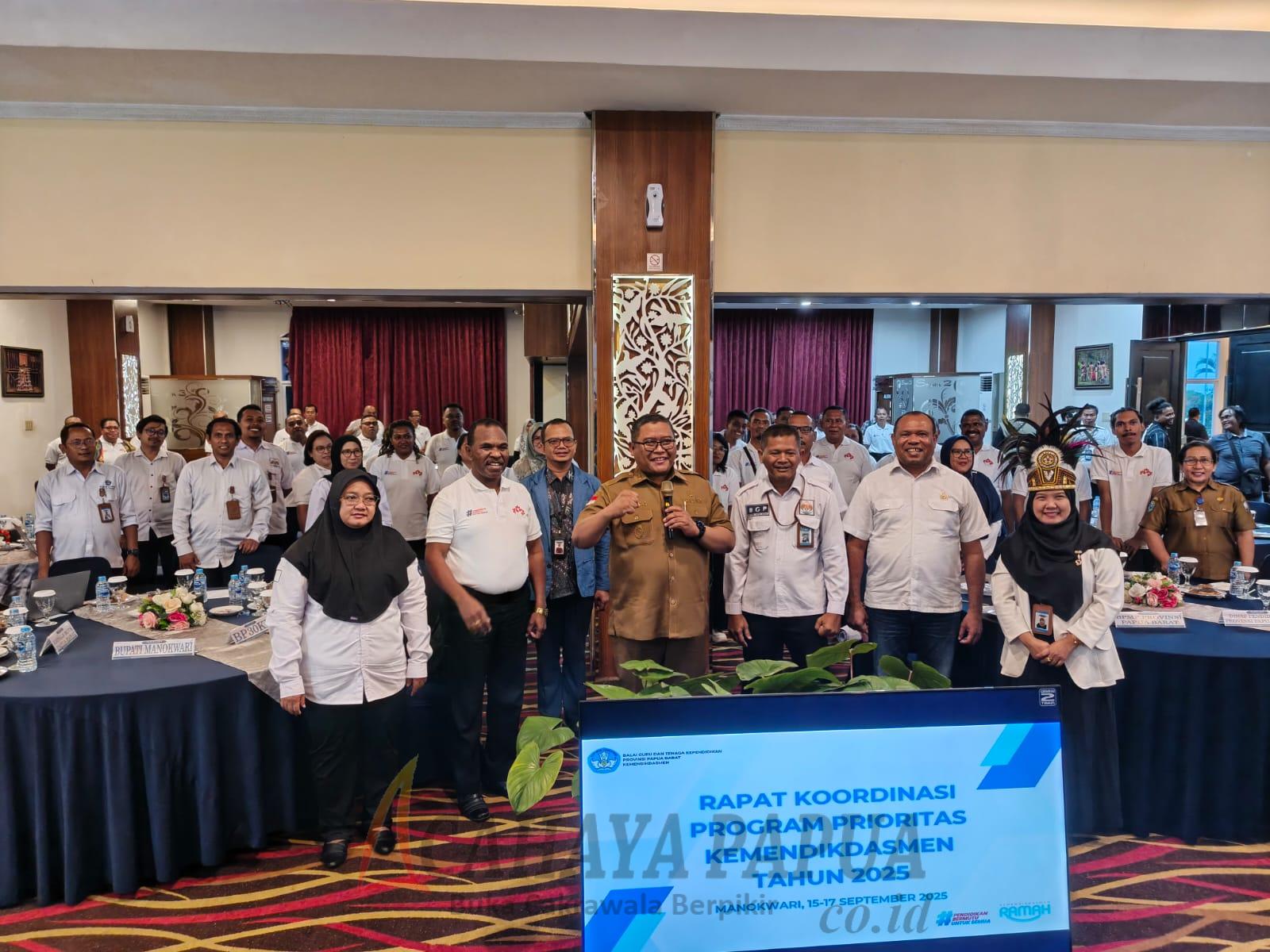 MANOKWARI, cahayapapua.id- Balai Guru dan Tenaga Kependidikan (GTK) Papua Barat menggelar rapat koordinasi bersama dinas pendidikan provinsi, kabupaten/kota, serta pemangku kepentingan pendidikan untuk mematangkan penerapan program prioritas Kementerian Pendidikan Dasar dan Menengah (Kemendikdasmen) Tahun 2025 di Papua Barat dan Papua Barat Daya.