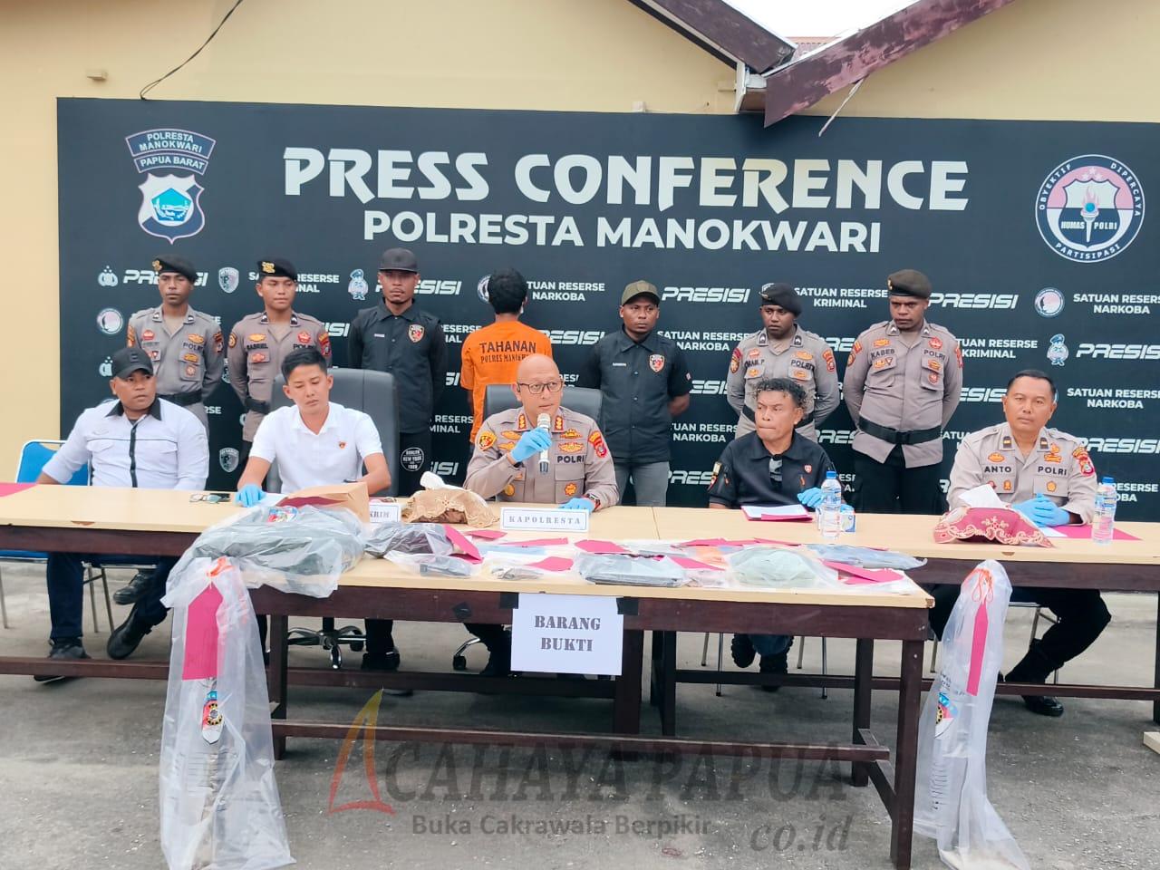 Kapolresta Manokwari Kombes Pol Ongky Isgunawan, didampingi Kasat Reskrim AKP Agung Gumara Samosir dan Kasi Humas IPDA Kiesman Ershi, mengungkapkan kronologi kejadian tersebut dalam konferensi pers di Mapolresta Manokwari, Rabu (12/11/2025).
