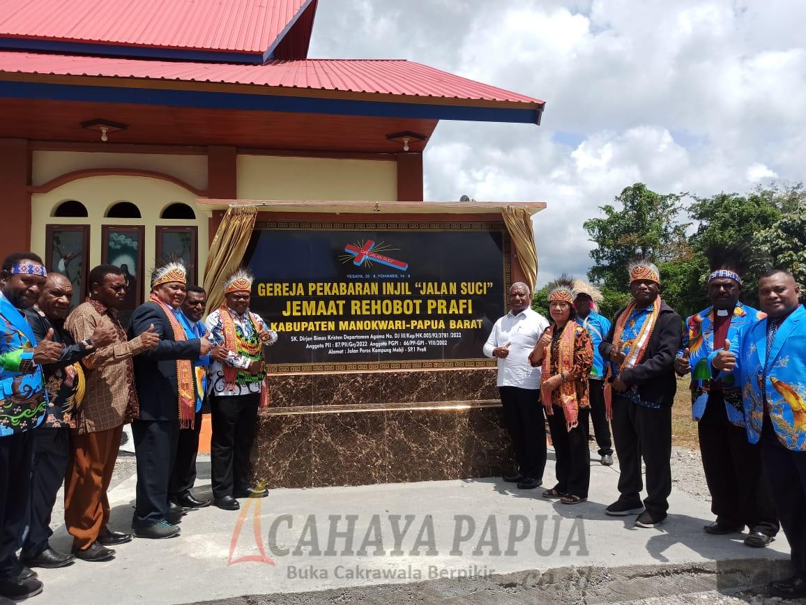 MANOKWARI, cahayapapua.id- Bupati Manokwari meresmikan Gereja Pekabaran Injil (GPI) Jalan Suci Jemaat Rehobot Prafi, Kabupaten Manokwari, Sabtu (25/11/2023). Acara peresmian turut dihadiri Kepala Suku Besar Arfak, Dominggus Mandacan.