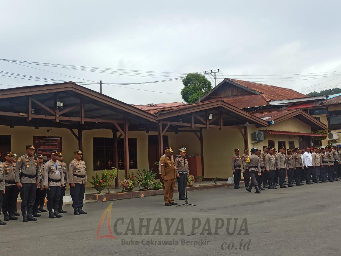 MANOKWARI, cahayapapua.id– Polresta Manokwari menggelar apel pergeseran personel pengamanan Pemilu, Senin (12/2/2024). Bupati Manokwari Hermus Indou mengatakan, ini adalah tugas negara dan harus dipikul dengan penuh rasa tanggung jawab.