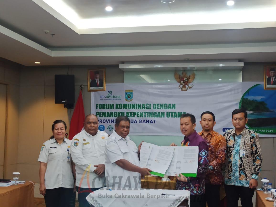 MANOKWARI, cahayapapua.id- Pemerintah Provinsi Papua Barat menyepakati rencana kerja Universal Health Converage (UHC) non cut off dengan BPJS Kesehatan. Kesepakatan bersama ditandai dengan penandatanganan oleh Penjabat Gubernur Papua Barat Ali Baham Temongmere dengan Deputi Direksi Wilayah XII BPJS Kesehatan Papua, Mangisi Raja Simarmata di Manokwari, Rabu (21/2/2024).