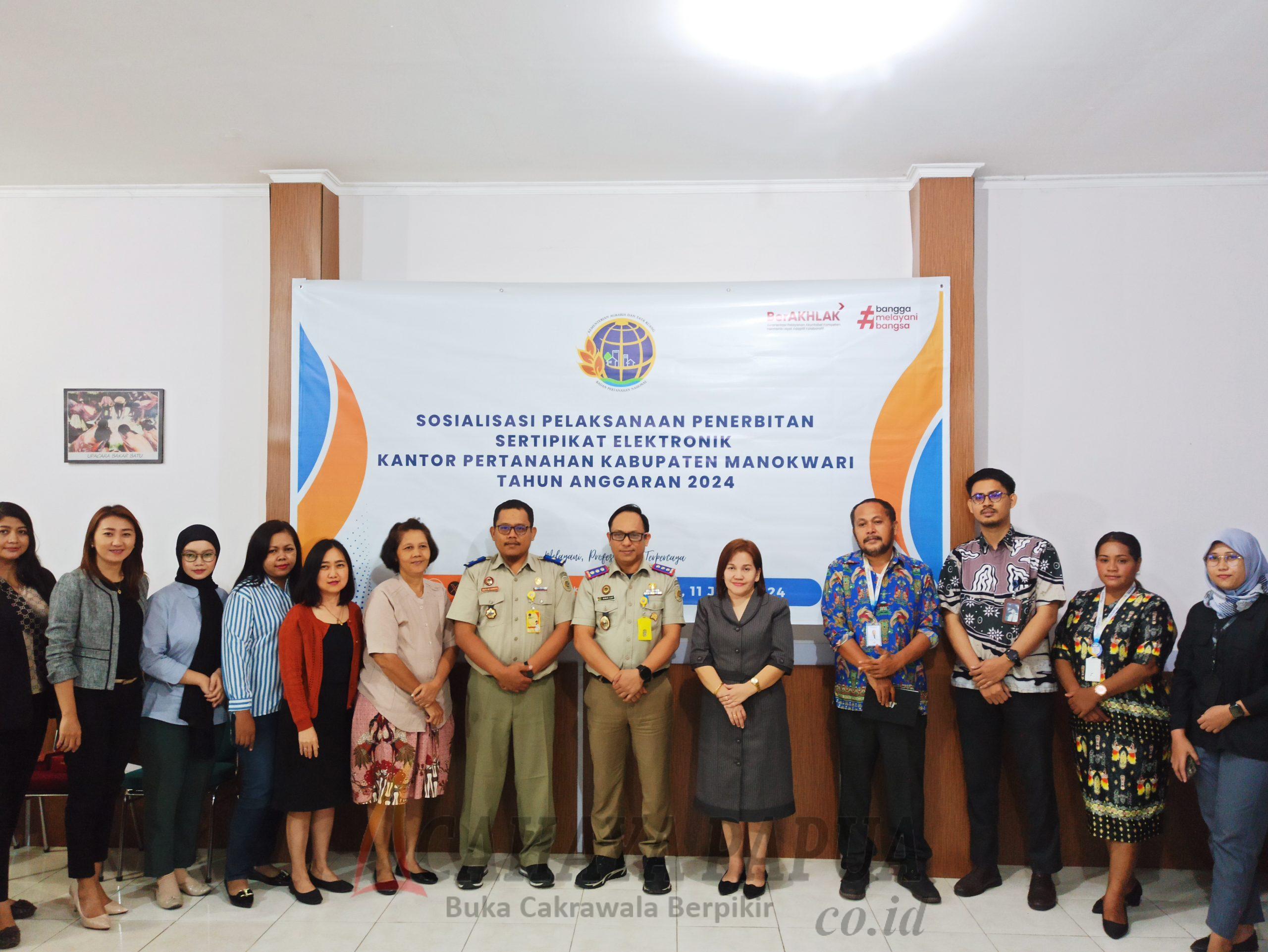 MANOKWARI, cahayapapua.id – Kantor Pertanahan Kabupaten Manokwari menyosialisasikan penerbitan sertifikat elektronik kepada Pejabat Pembuat Akta Tanah (PPAT) dan perbankan. Sosialisasi ini bertujuan memberi pemahaman kepada PPAT dan perbankan mengenai proses terbitnya sertifikat elektronik.