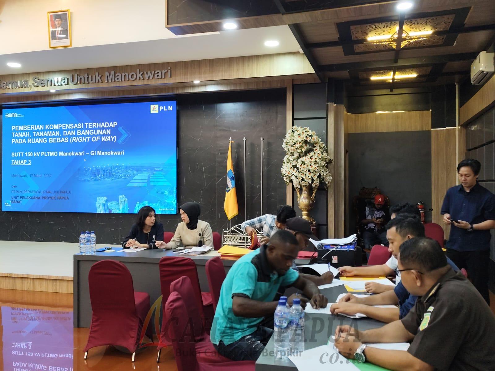 MANOKWARI, cahayapapua.id- PT PLN Unit Pelaksana Proyek (UPP) Papua Barat kembali melaksanakan pembayaran kompensasi tahap III terhadap warga terdampak pembangunan Saluran Udara Tegangan Tinggi (SUTT) di wilayah Kabupaten Manokwari, Senin (17/3/2025)