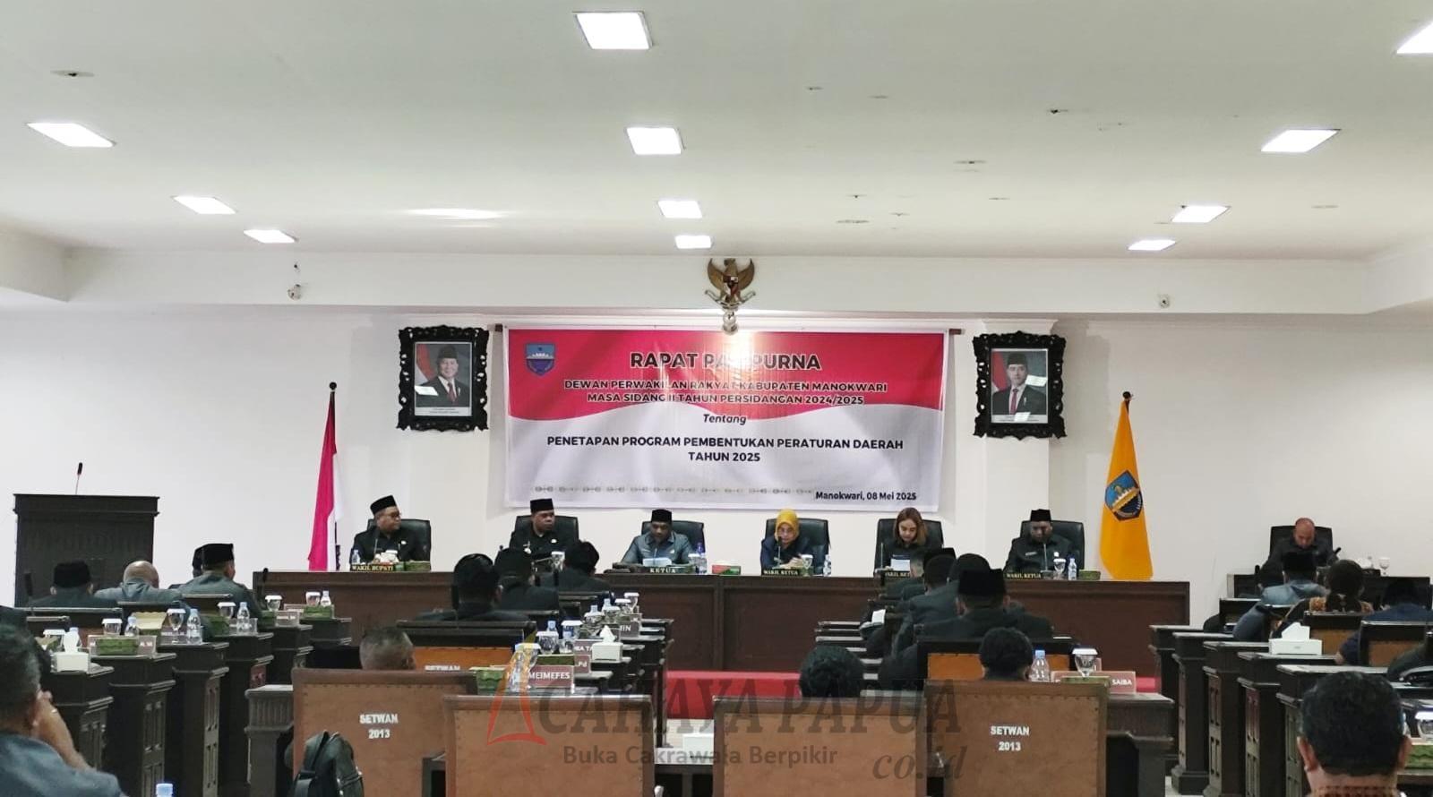 Hal ini disampaikan dalam rapat paripurna tentang penetapan program pembentukan peraturan daerah tahun 2025, Kamis (8/5/2025) bertempat di ruang rapat DPRK Manokwari