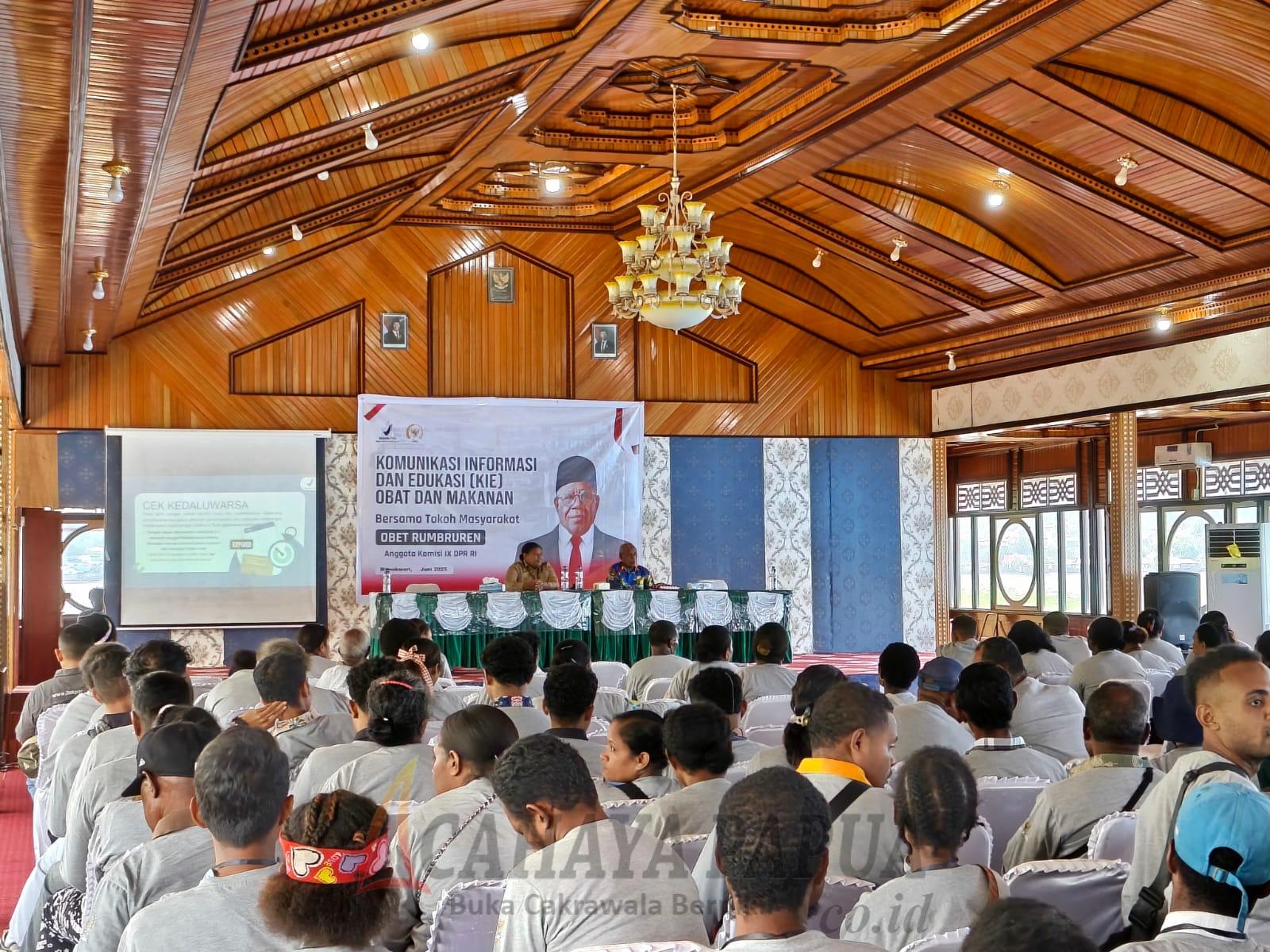 Kegiatan yang berlangsung di Manokwari tersebut turut menghadiri Tokoh Masyarakat dalam hal ini Anggota Komisi IX DPR RI Obet Rumbruren sebagai Narasumber. Kegiatan ini bertujuan meningkatkan pemahaman masyarakat terhadap peran dan fungsi BPOM dalam menjamin keamanan produk yang dikonsumsi masyarakat.