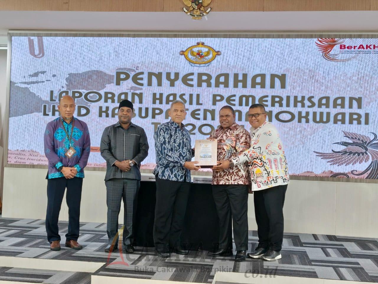 MANOKWARI, cahayapapua.id- Badan emeriksa Keuangan (BPK) RI Perwakilan Provinsi Papua Barat secara resmi menyerahkan Laporan Hasil Pemeriksaan (LHP) atas Laporan Keuangan Pemerintah Daerah (LKPD) Kabupaten Manokwari Tahun Anggaran 2024, Kamis (19/6/2025)