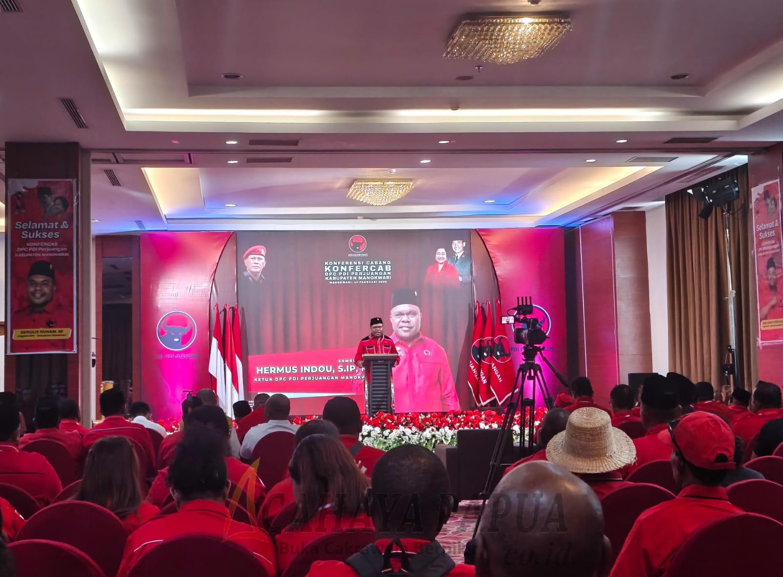 MANOKWARI, cahayapapua.id- Konferensi Cabang (Konfercab) DPC PDI Perjuangan Kabupaten Manokwari yang digelar Sabtu (14/2/2026), Ketua DPC PDI Perjuangan Kabupaten Manokwari, Hermus Indou, menilai perjuangan para kader dilakukan dengan pengorbanan besar, mulai dari tenaga, pikiran, hingga harga diri dan martabat demi kejayaan partai dan kepentingan rakyat.