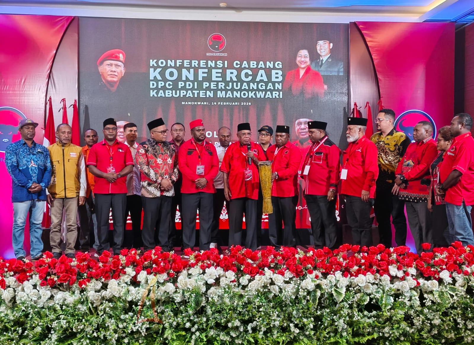 MANOKWARI, cahayapapua.id- Ketua DPD PDI Perjuangan Provinsi Papua Barat, Markus Waran, secara resmi membuka kegiatan Konferensi Cabang (Konfercab) DPC PDI Perjuangan Kabupaten Manokwari yang digelar di Swiss-Belhotel Manokwari, Sabtu (14/2/2026).
