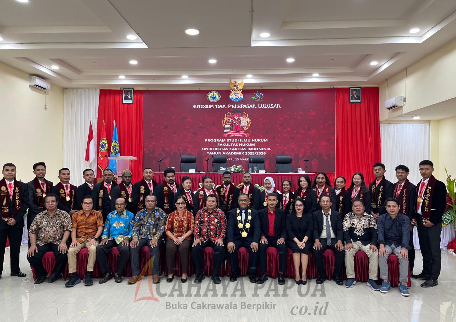 MANOKWARI, cahayapapua.id- Fakultas Hukum Universitas Caritas Indonesia menggelar yudisium dan pelepasan lulusan Program Studi Ilmu Hukum tahun akademik 2025/2026, Rabu (25/3/2026).