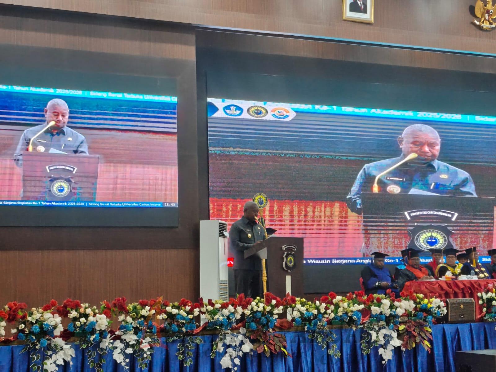 Hal itu disampaikannya saat menghadiri wisuda perdana Universitas Caritas Indonesia di Gedung Arfak Convention Hall, Manokwari, Sabtu (28/3/2026).