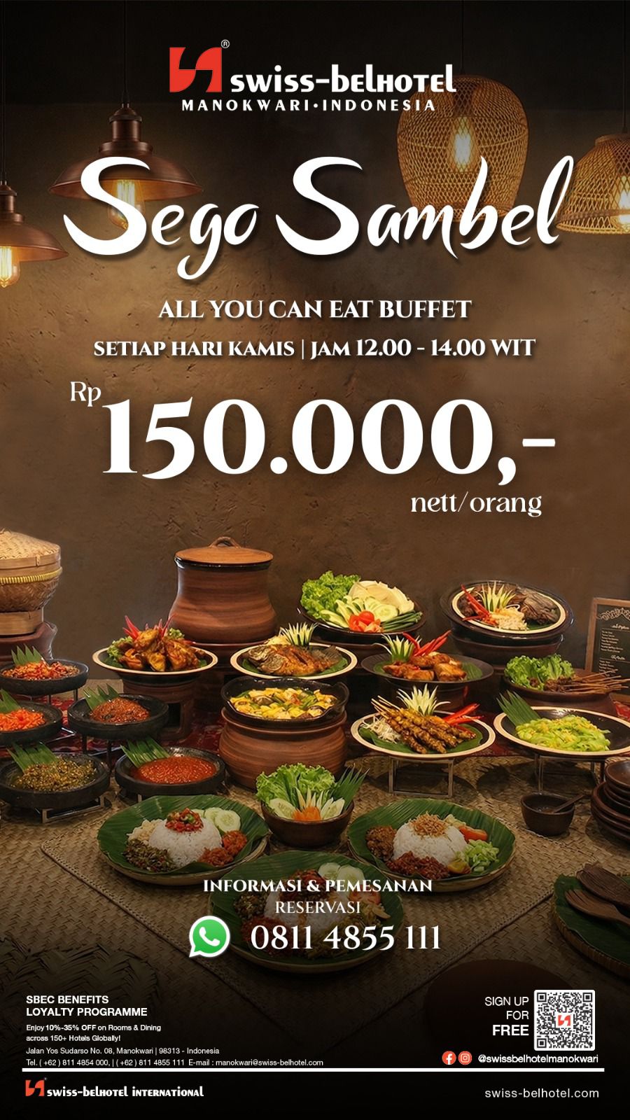 MANOKWARI, cahayapapua.id- Swiss-Belhotel Manokwari kembali menghadirkan promo kuliner menarik bertajuk “Sego Sambel”, konsep makan siang prasmanan sepuasnya dengan cita rasa khas Jawa.