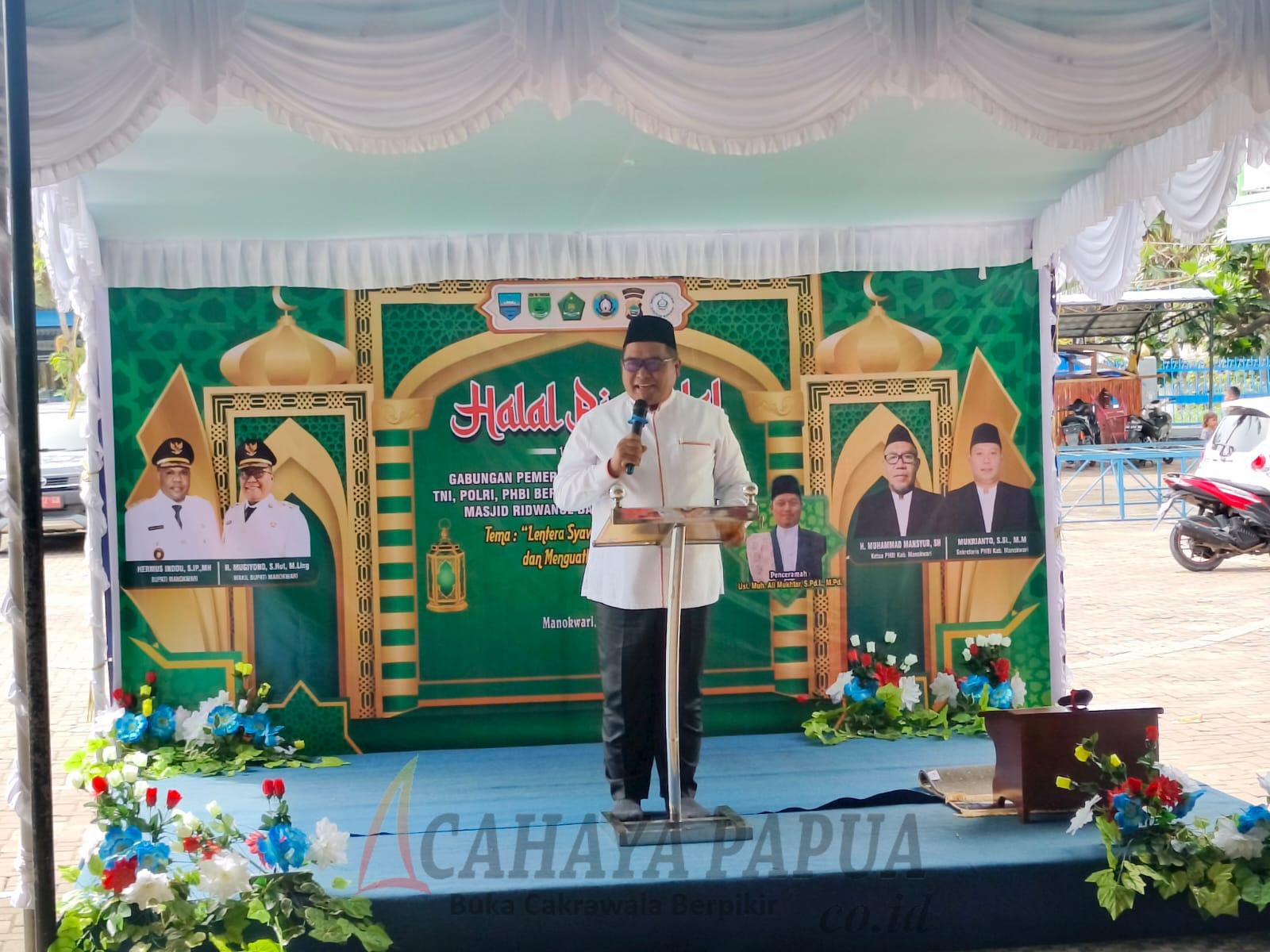 Dalam sambutannya, Wakil Bupati Manokwari, H. Mugiyono, menyampaikan bahwa halal bihalal merupakan tradisi luhur yang telah menjadi bagian dari budaya bangsa Indonesia.