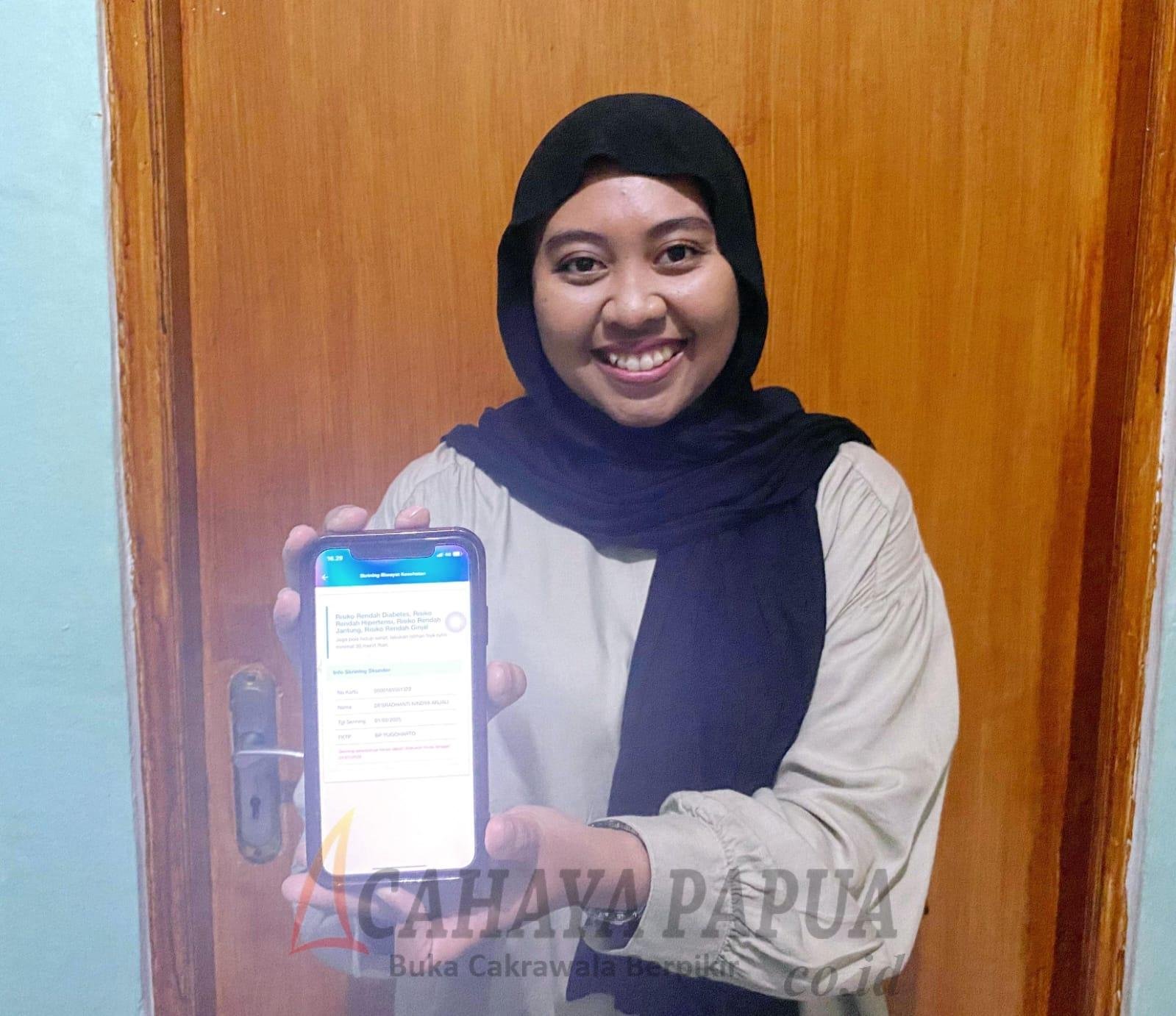 Nindya Anjali (24) merupakan salah satu peserta program JKN segmen Penerima Bantuan Iuran Jaminan Kesehatan (PBI JK), mengapresiasi fitur skrining riwayat kesehatan yang terdapat pada aplikasi Mobile JKN. Ia mengatakan jika fitur yang terdapat dalam aplikasi tersebut membantu dirinya untuk memahami kondisi kesehatan tanpa perlu pergi ke fasilitas kesehatan.