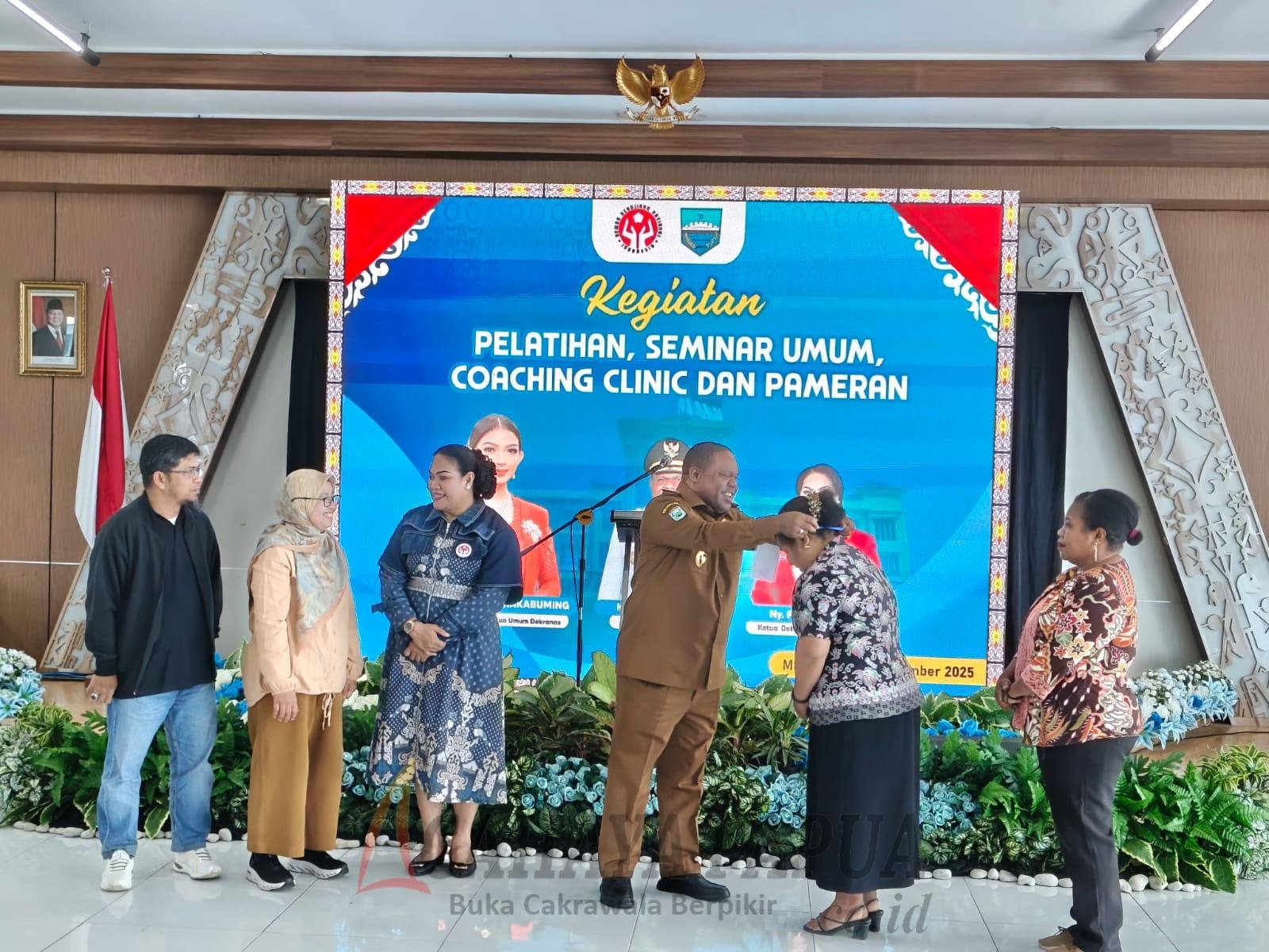 MANOKWARI, cahayapapua.id- Bupati Manokwari, Hermus Indou, resmi membuka kegiatan pelatihan, seminar umum, coaching clinic, dan pameran UMKM yang digelar oleh Dewan Kerajinan Nasional Daerah (Dekranasda) Kabupaten Manokwari, Senin (3/11/2025).