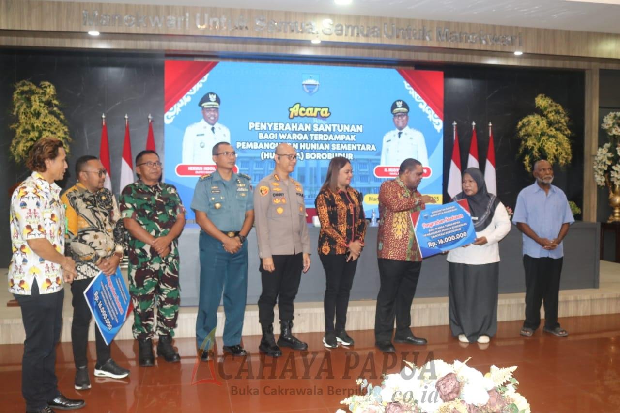 MANOKWARI, cahayapapua.id- Pemerintah Kabupaten (Pemkab) Manokwari menunjukkan komitmen nyata terhadap warganya dengan menyerahkan santunan kepada 164 kepala keluarga (KK) yang terdampak pembangunan Hunian Sementara (Huntara) Borobudur.
