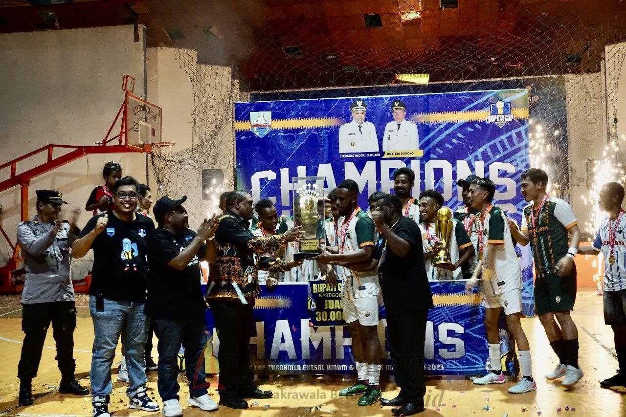 MANOKWARI, cahayapapua.id- SMAN 2 Manokwari dan Acemo FC menjuarai turnamen futsal Bupati Cup 2023. SMAN 2 tampil sebagai juara untuk kategori pelajar, sementara Acemo FC untuk kategori umum.