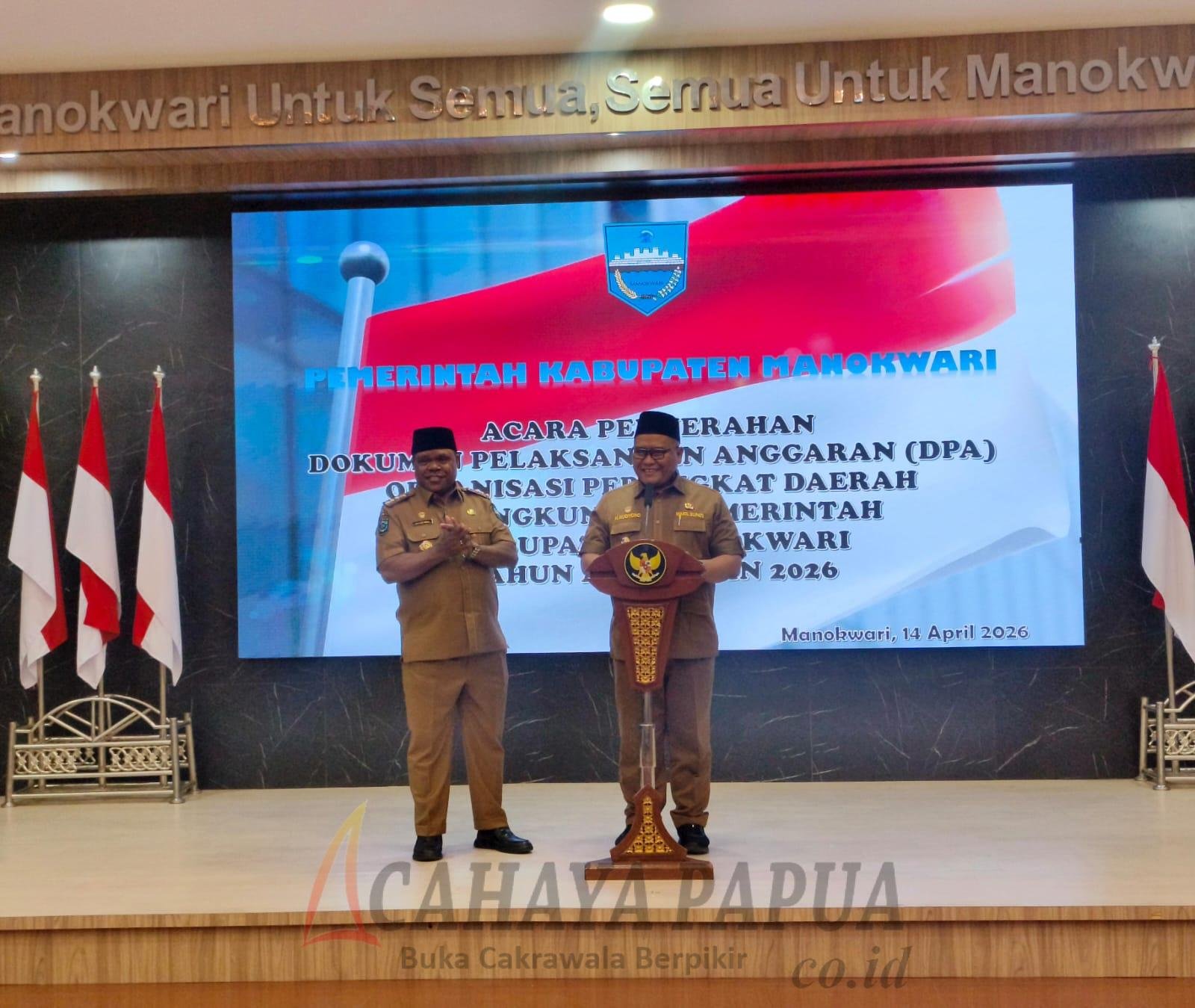 Hal itu disampaikan saat penyerahan DPA kepada OPD di lingkungan Pemerintah Kabupaten Manokwari yang dilakukan bersama Bupati Manokwari, Selasa (14/4/2026).