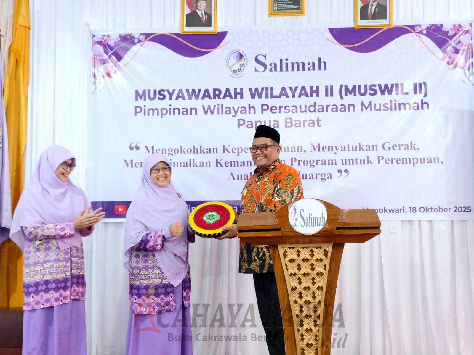 MANOKWARI, cahayapapua.id- Musyawarah Wilayah (Muswil) II Pimpinan Wilayah Persaudaraan Muslimah (Salimah) Papua Barat resmi dibuka oleh Wakil Bupati Manokwari, H. Mugiyono, di Manokwari, Sabtu (18/10/2025).
